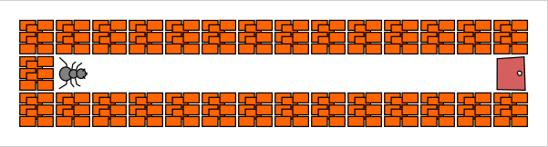 Vous aurez noté qu’une fois la fourmi arrivée à cet endroit du labyrinthe, elle fait, selon les cas, face à une grande toile d’araignée (mortelle!) ou une petite. Elle doit donc agir différemment selon ce contexte.