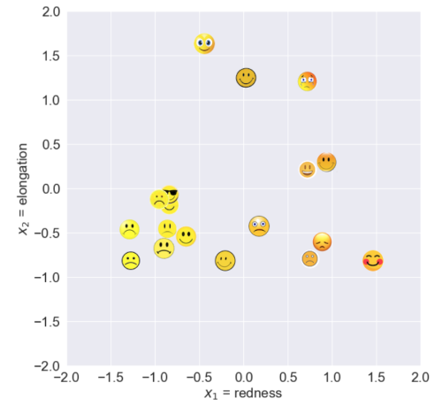 Extraction de variables = création de m nouvelles variables à partir des p initiales, \(m << p\) (redness/elongation sont des combinaisons linéaires des 4096 éléments).