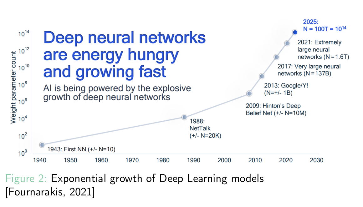 Autre exemple :consommation en joule pour reconnaitre une image, ce qui revient à faire 50km de voitures pour reconnaitre \(10^{12}\) images: